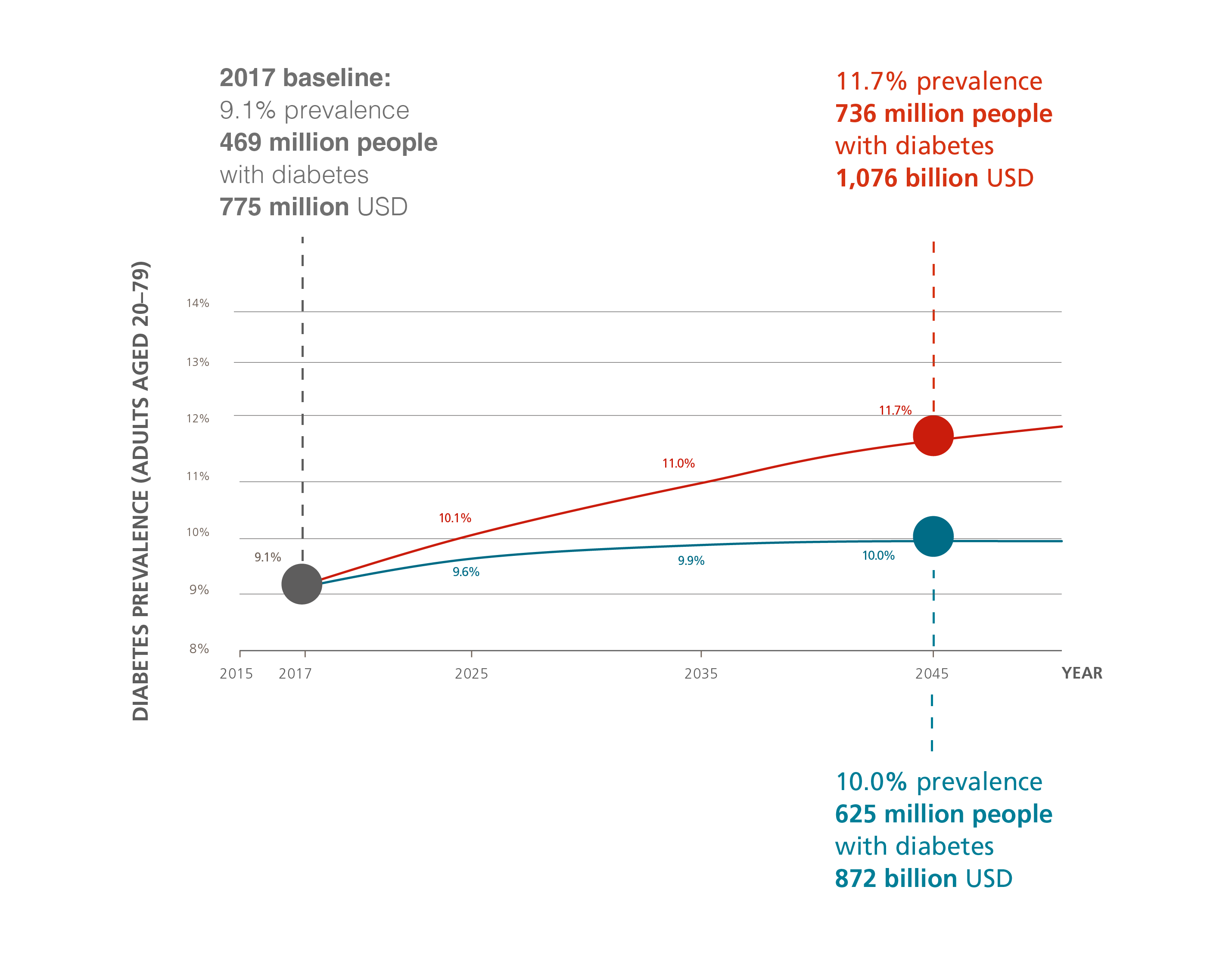 The Diabetes Projection Model is a tool that plots the trajectory of diabetes in any city over time. It allows cities to forecast the impact that reducing obesity could have on both the prevalence and cost of diabetes. The model makes it possible to understand the scale of the challenge and set a goal to bend the curve in a city.
